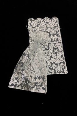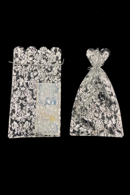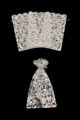 Gümüş Güllü Şeffaf Tül Kese, 20 Adet Ölçü 15x27cm, Hediye Gelin Düğün Bohça Çeyiz Havlu Yasin Yazma