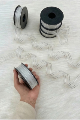 Gümüş Simli Hilton Çizgili Şifon Kurdele 2,5cm 20mt, Gelin Bohça Nişan Çeyiz Hediye Nikah Süsleme