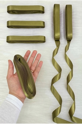 Haki Yeşil Saten Kurdele 2 Cm 10 Mt, Bohça Çeyiz Nikah Kına Sünnet Doğum Günü Parti Hediye Süsleme