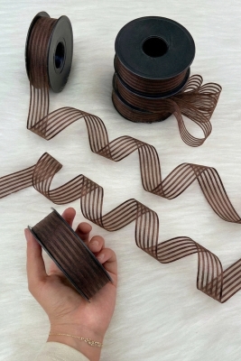 Kahverengi Hilton Çizgili Şifon Kurdele 2,5 cm 20 mt, Bohça, Nişan, Çeyiz, Hediye, Nikah, Süsleme