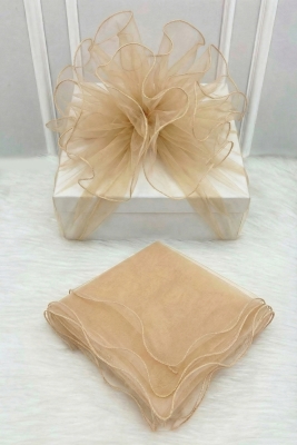Krem Kristal Tüle Gümüş Sim Overlok Kenarlı Hazır Gelin Bohça Süsü, Damat