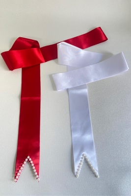 Kırmızı Beyaz Sade Incili Gelin Damat Takı Kurdele, Düğün Nişan Takı Kemeri