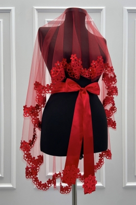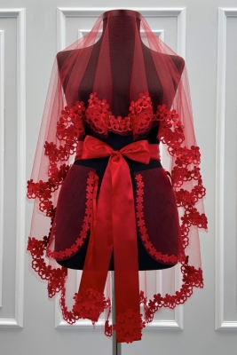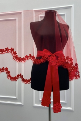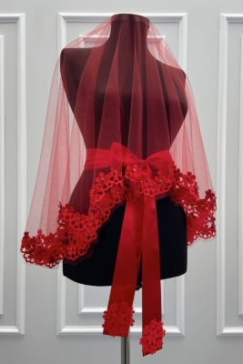 Kırmızı Gelin Duvak Seti, 3D Çiçek Ve Parlak Taşlı, Kına Gecesi Duvağı Yüz Örtüsü Seti 6 Parça