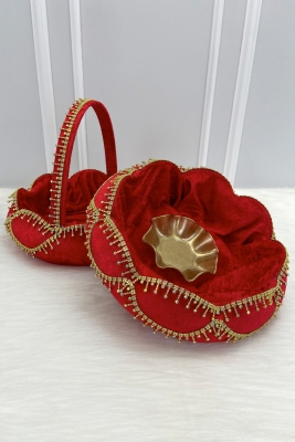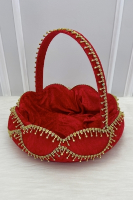 Kırmızı Gelin Kına Gecesi Tepsi Sepet Takımı, Kadife Parlak Taş Süslemeli, Nişan, Nikah, Düğün, Söz