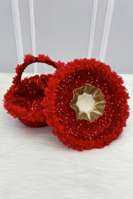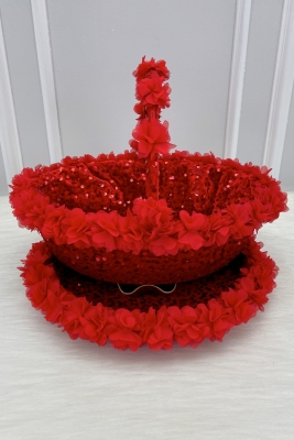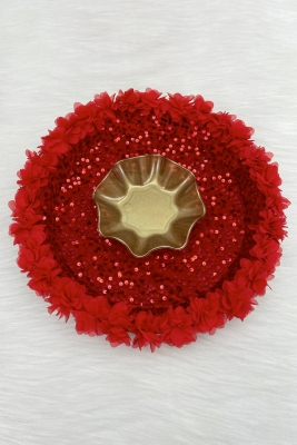 Kırmızı Gelin Kına Gecesi Tepsi Ve Sepeti, Düğün Sünnet Nişan Pullu Kadife Üç Boyutlu Lazer Çiçekli