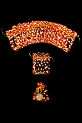 Kırmızı Gold Minik Kese, Kına Düğün Nikah Nişan Hediye Çerez Altın Takı, Puantiyeli 50 Adet, 7x9cm
