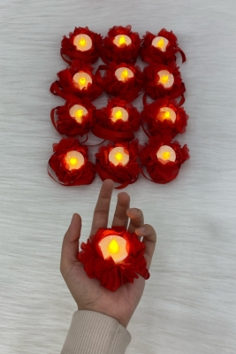 Kırmızı Ledli Kına El Mumu, Tealight Mum Pilli 6 Adet, Sünnet, Led Işıklı, Düğün, Nedime, Bride