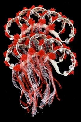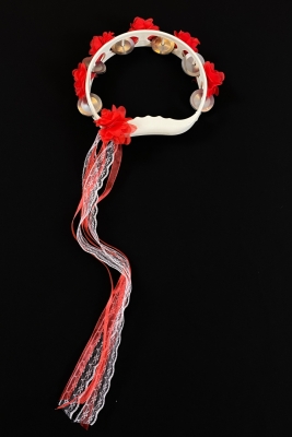 Kırmızı Süslü Gelin Nedime Kına Gecesi Düğün Sünnet Tefi, Üç Boyut Lazer Çiçek Kurdele Süslü 5 Adet