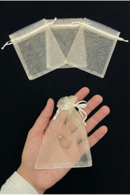 Krem Organze Şeffaf Tül Kese 100 Adet Ölçü 9x12cm, Kına Çerez Kuruyemiş Altın Takı Söz Hediye Bohça