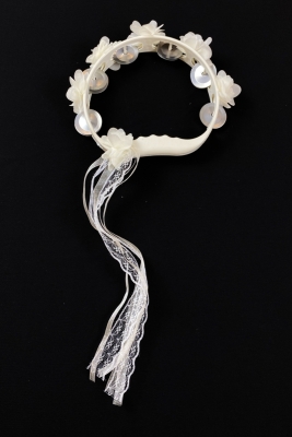 Krem Süslü Gelin Nedime Kına Gecesi Tefi, Üç Boyut Lazer Çiçek ve Kurdele Detaylı Tef 10 Adet