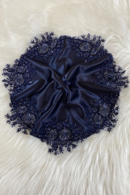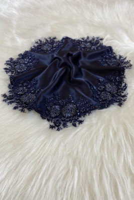 Lacivert Gelin Damat Halay El Mendili, Saten Vip Aplikli, Kına Gecesi Düğün Nedime Sünnet Söz Nişan