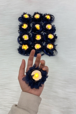 Lacivert Ledli Kına El Mumu, Düğün, Nedime, Bride, Sünnet, Led Işıklı, Tealight Mum Pilli 12 Adet