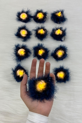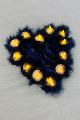 Lacivert Ledli Kına El Mumu, Düğün, Nedime, Bride, Sünnet, Led Işıklı, Tealight Pilli Tüylü 12 Adet