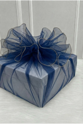 Lacivert Süsleme Tülü Gold Kenar Bohça Çeyiz Gelin Damat Söz Nişan Nikah Valiz Hediye Süsü 150x150cm