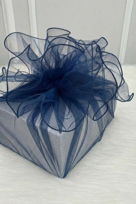 Lacivert Süsleme Tülü Overlok Kenar, Bohça Çeyiz Gelin Damat Nişan Nikah Valiz Hediye Süsü 100x100cm