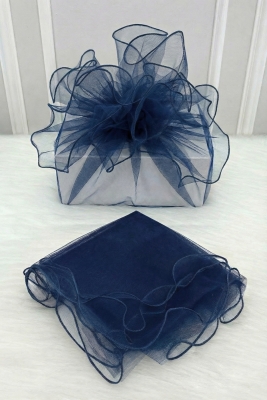 Lacivert Süsleme Tülü Overlok Kenar, Bohça Çeyiz Gelin Damat Nişan Nikah Valiz Hediye Süsü 100x100cm