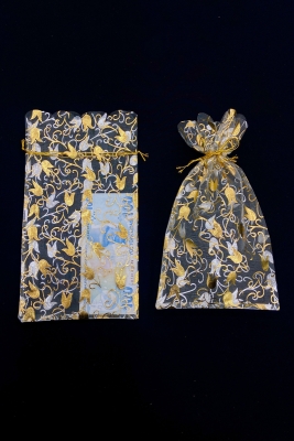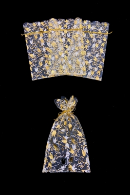 Laleli Gold Şeffaf Tül Kese, 20 Adet Ölçü 15x27cm, Hediye Gelin Düğün Bohça Çeyiz Havlu Yasin Yazma