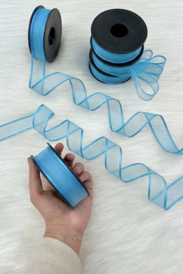 Mavi Şifon Kurdele 2,5 cm 20 mt, Gelin, Damat, Bohça, Nişan, Çeyiz, Özel Gün, Hediye, Düğün, Süsü