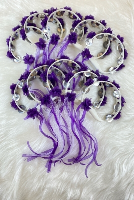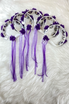 Mor Süslü Gelin Nedime Kına Gecesi Tefi, Üç Boyut Lazer Çiçek ve Kurdele Detaylı Tef 1 Adet