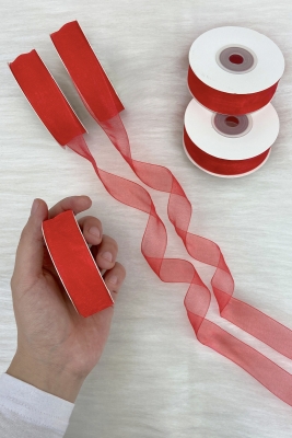 Organze Tül Kurdele Kırmızı 2 cm 22mt, Gelin, Bohça, Nişan, Çeyiz, Hediye, Paketleme, Süsleme, Nikah