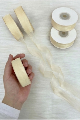 Organze Tül Kurdele Krem 2 cm 22 mt, Gelin, Bohça, Nişan, Çeyiz, Hediye, Paketleme, Süsleme, Nikah