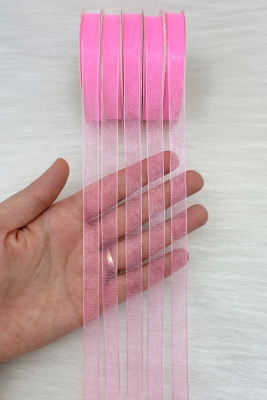 Organze Tül Kurdele Neon Pembe 1 cm 22 mt, Bohça, Nişan, Çeyiz, Hediye, Paketleme, Süsleme, Nikah