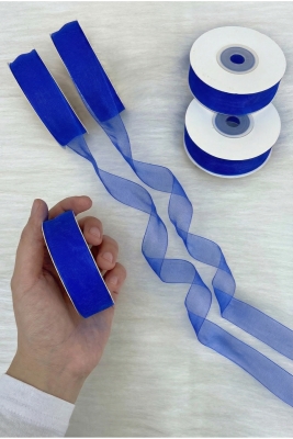 Organze Tül Kurdele Saks Mavi 2 cm 22 mt, Bohça, Nişan, Çeyiz, Hediye, Paketleme, Süsleme, Nikah