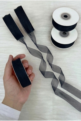 Organze Tül Kurdele Siyah 2 cm 22 mt, Gelin, Bohça, Nişan, Çeyiz, Hediye, Paketleme, Süsleme, Nikah