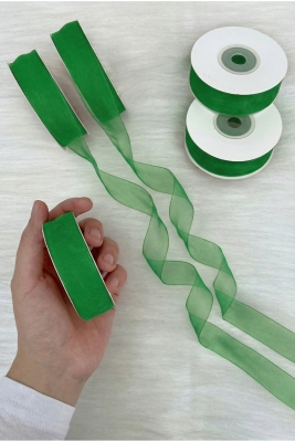 Organze Tül Kurdele Yeşil 2 cm 22 mt, Gelin, Bohça, Nişan, Çeyiz, Hediye, Paketleme, Süsleme, Nikah