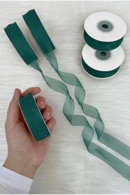 Organze Tül Kurdele Zümrüt Yeşili 2 cm 22 mt, Bohça, Nişan, Çeyiz, Hediye, Paketleme, Süsleme, Nikah