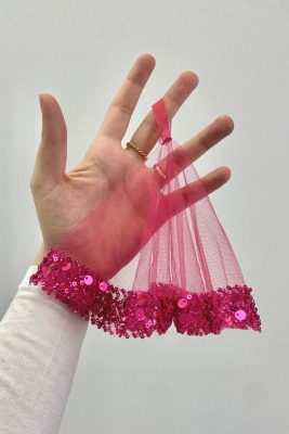 Pembe Gelin Mendili, Halay El Mendili, Zarif Su Taşlı Pullu Boncuklu Pul Payet