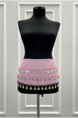 Pembe Gümüş Shakira Şakira Kemer Metal Para Pullu ; Uzunluk: 120/130cm ; 1