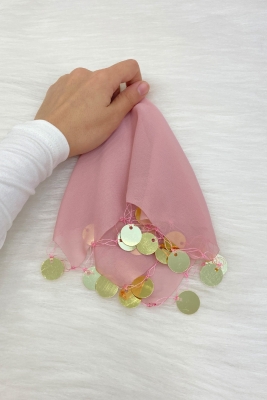 Pudra Gold Şifon Halay Mendili 1 Adet, Gelin Damat Düğün Kına Sünnet Nişan Bride