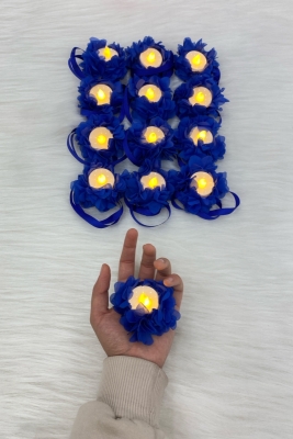 Saks Mavi Ledli Kına El Mumu, Düğün, Nedime, Bride, Sünnet, Led Işıklı, Tealight Mum Pilli 12 Adet