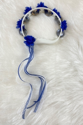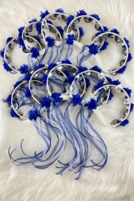 Saks Mavi Süslü Gelin Nedime Kına Gecesi Sünnet Düğün Tefi, Üç Boyut Lazer Çiçek Ve Kurdeleli 5 Adet