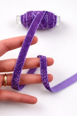 Simli Kadife Kurdele Lila 1cm 5mt, Gelin, Damat, Bohça, Nişan, Çeyiz, Nikah, Hediye, Süsleme