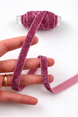 Simli Kadife Kurdele Pembe 1cm 5mt, Gelin, Damat, Bohça, Nişan, Çeyiz, Nikah, Hediye, Süsleme