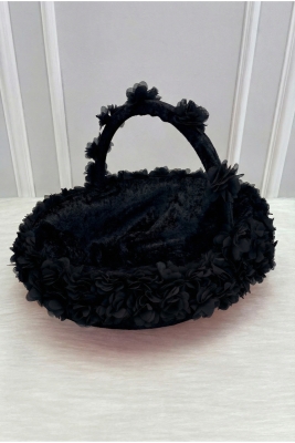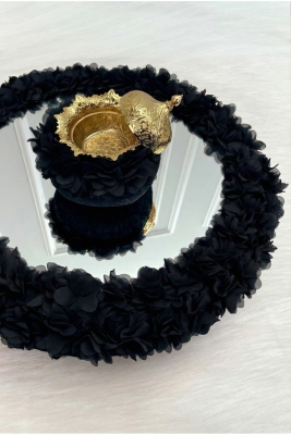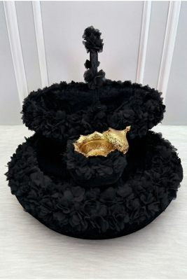 Siyah Çiçekli Aynalı Kadife Kına Gecesi Tepsi Sepet Gelin Takımı, Nişan Nikah Düğün Söz Sünnet