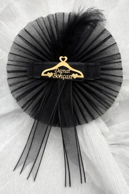 Siyah Tül Üzerine Gold Pleksili Ve Tüylü Gold Damat Bohçasi Süsü Gelin Bohça