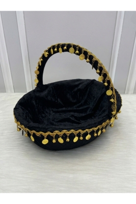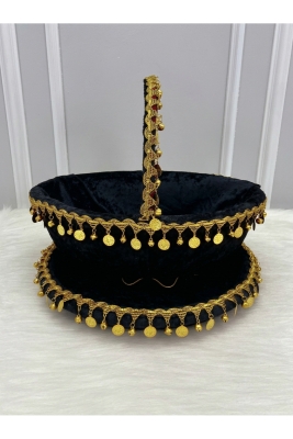 Siyah Gelin Kına Gecesi Tepsi Ve Sepeti, Kadife, Gold Zilli Ve Pullu, Düğün, Sünnet, Nişan, Söz