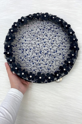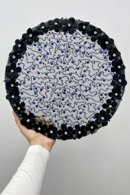 Siyah Gelin Tefi 32cm Çiçek Pul Payet Parlak Taşlı Düğün Kına Nedime Bride Parti Defi