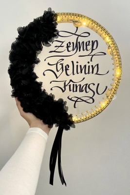 Kına Gecelerinin Vazgeçilmezi İsme Özel Kaligrafi Sanatlı 32 cm Şeffaf Zemin Üzeri Ledli (Üç Fonksiyonlu) Zilli Üç Boyutlu Çiçek Parlak Taşlı Organze Kurdele Süslü Gelin Tefimiz.; ; ; Ledimiz Üç Fonksiyonlu Olup Videodan Ayrıntılı Olarak İnceleyebilirsiniz.; ; ; Bu ürün ZEYMERADE markası için ÜNLÜ KALİGRAFİ SANATÇISI Murat Demirağ TARAFINDAN BİZZAT yazılmaktadır.; ; ; Yılların Deneyimi, Alanında Uzman Kaligrafımız ve Size Özel Hazırlanan Tefimizle Bu Özel Gününüzde Yanınızda Olmaktan Mutluluk Duyarız.; ; Renk: Siyah ; ; Sipariş Sonrası İlk 5 Dakika İçinde Sipariş Sorularımdan yada Satıcıya Sor Kısmından Yazılacaklar: Sipariş No ve Yazılacak Tam Metin (gelin, kına, kına gecesi, sünnet, sünnet hatırası, tarih, damat ismi vs gibi) ; ; Gelin Duvak Seti, Kına Gecesi, Düğün, Nikah, Nişan, Söz, Bekarlığa Veda Partisi, Bride To Be Set, Çeyiz, Bohça Süsü, Konvoy Süsü, Damat, Nedime, Sağdıç, Henna Night, Wedding, After Parti Malzemeleri, Sünnet Örtüsü ve Malzemeleri, Kına Mevlüt, Baby Shower, Süsleme Ürünleri, Kına Duvağı, Damat Şalı, Kına Şalı, Damat Omuz Örtüsü, Kına Örtüsü Alı Yüz Örtüsü, Malzemeleri, Aksesuarları İçin Satıcı İsmine Tıklayarak Mağazamızı Ziyaret Edebilirsiniz.; ;İlgili Ürünler