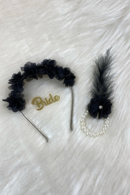 Siyah Nedime Bilekliği 5 Adet, Nedime Tacı(Metal) 5 Adet, Bekarlığa Veda Partisi, 11 Parça Set