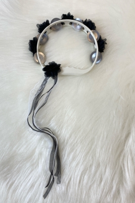 Siyah Süslü Gelin Nedime Kına Gecesi Düğün Sünnet Tefi, Üç Boyut Lazer Çiçek Ve Kurdele Süslü 5 Adet