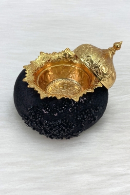 Vip Aplik Süslemeli, Parlak Taş Ve Ayna Detaylı Kadife Lüks Kına Tepsisi ; ;