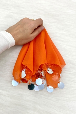 Turuncu Gümüş Şifon Halay Mendili 1 Adet, Gelin Damat Düğün Kına Sünnet Nişan Bride