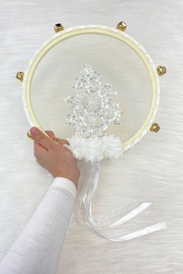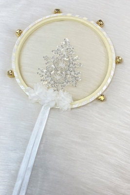 Vip Aplikli Gelin Tefi Beyaz, Nedime Düğün Kına Gecesi Sünnet Bekarlığa Veda Bride Zilli 27cm 1 Adet