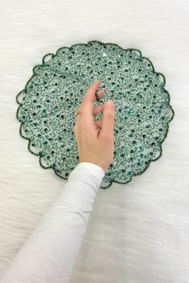 Yeşil Gelin Damat Mendili, Pul Payet İnci Ve Kristal Taş Detaylı, Düğün Kına Sünnet Söz Nişan