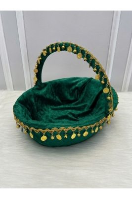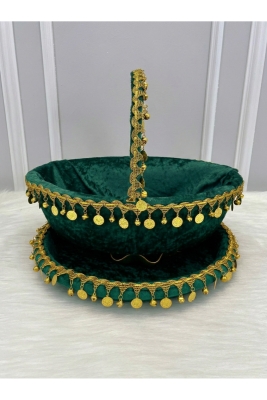 Yeşil Gelin Kına Gecesi Tepsi Ve Sepeti, Kadife, Gold Zilli Ve Pullu, Düğün, Sünnet, Nişan, Söz