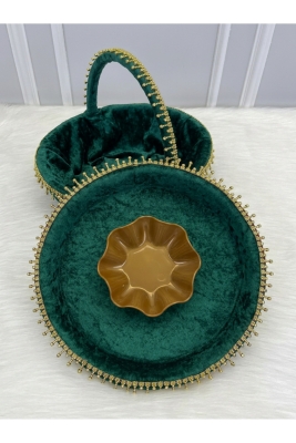 Yeşil Gelin Kına Gecesi Tepsi Ve Sepeti, Lüks Parlak Taşlı Kadife, Düğün, Sünnet, Nişan, Söz
